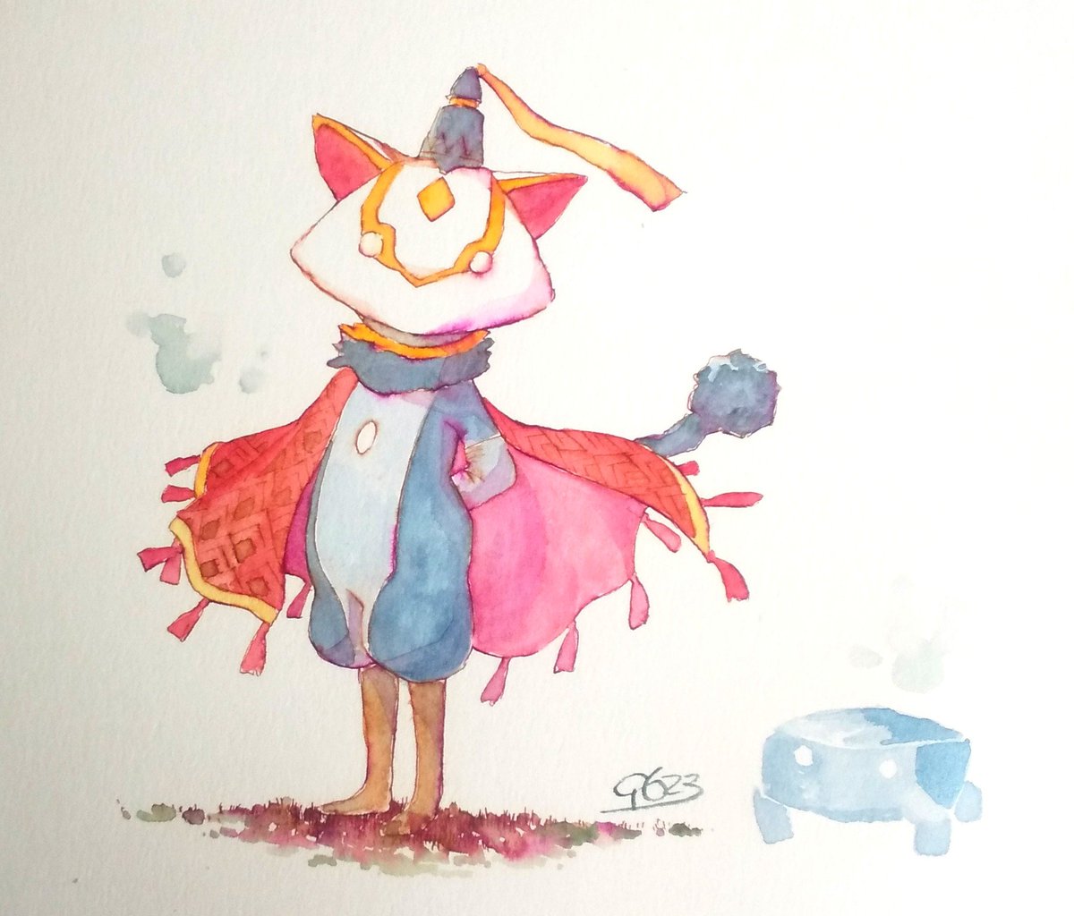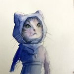 おサブのシュガ、猫耳フードでニャンコらしくなった😍 リアルシュガをはめ込んだらどうなるかやってみた 長毛のフッサフッサ感が無くなるのがちょっと残念かなぁ🤣 #星を紡ぐ子どもたち #thatskygame #水彩画