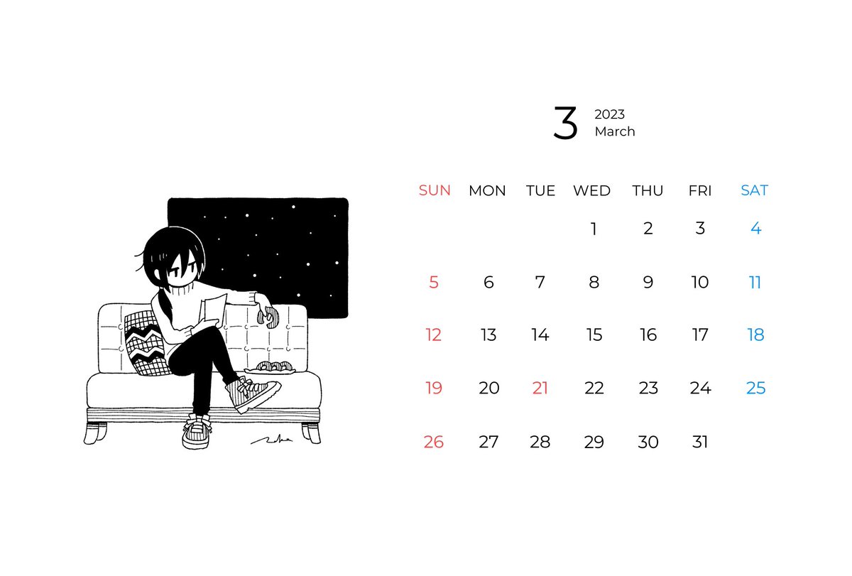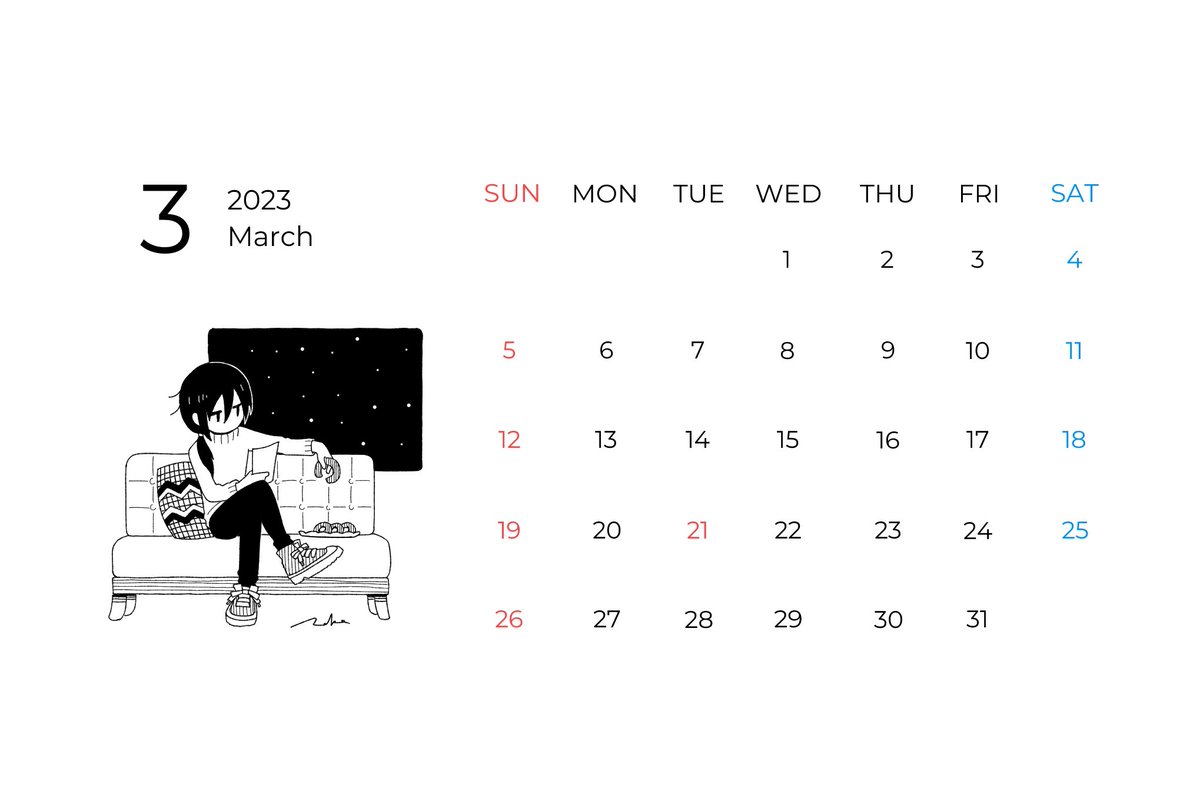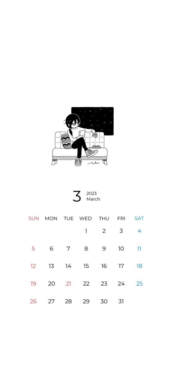 【修正再掲】 3月のちびキャラカレンダーです。今月は休憩中におやつを食べつつやっぱり仕事してしまう505です。忙しい時期ですが、休みながら楽しく過ごしましょう。スマホサイズとポスカサイズ2種。 ※英語表記と日数が間違ってたので修正しました!ごめんなさい! #星旅カレンダー2023 #星旅少年