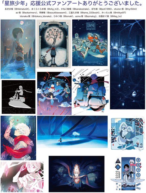 4月に星旅少年1巻を発売した時、公式ファンアート企画をしてもらってました。たくさんの作家さんがご参加くださったので、まだ見てない方がいたらこちらのタグからぜひご覧ください〜! #星旅応援公式ファンアート #星旅少年