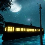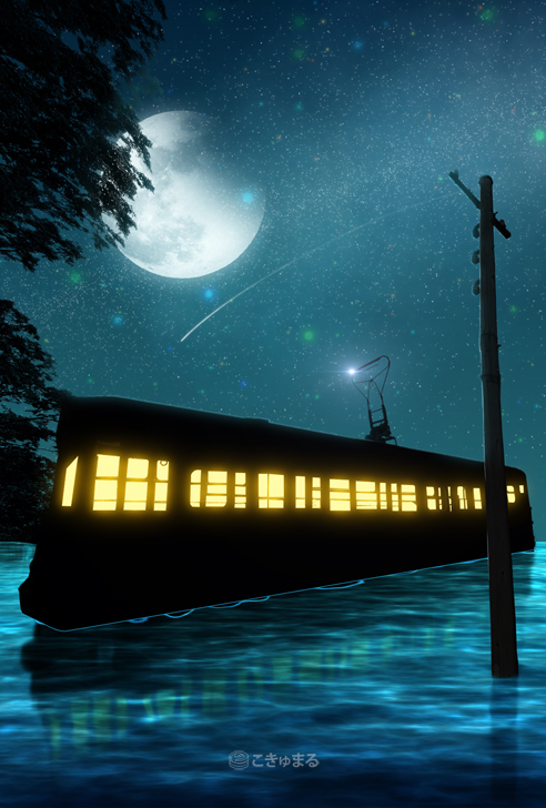 「星の海を渡るトロリーバス」。 ちょっと修正してみました。 #イラスト #ファンタジー #ノスタルジー #レトロ #電柱 #鉄塔 #星空 #星景 #デジタルアート #illustration #photograghy #digitalart #アトリエの系譜