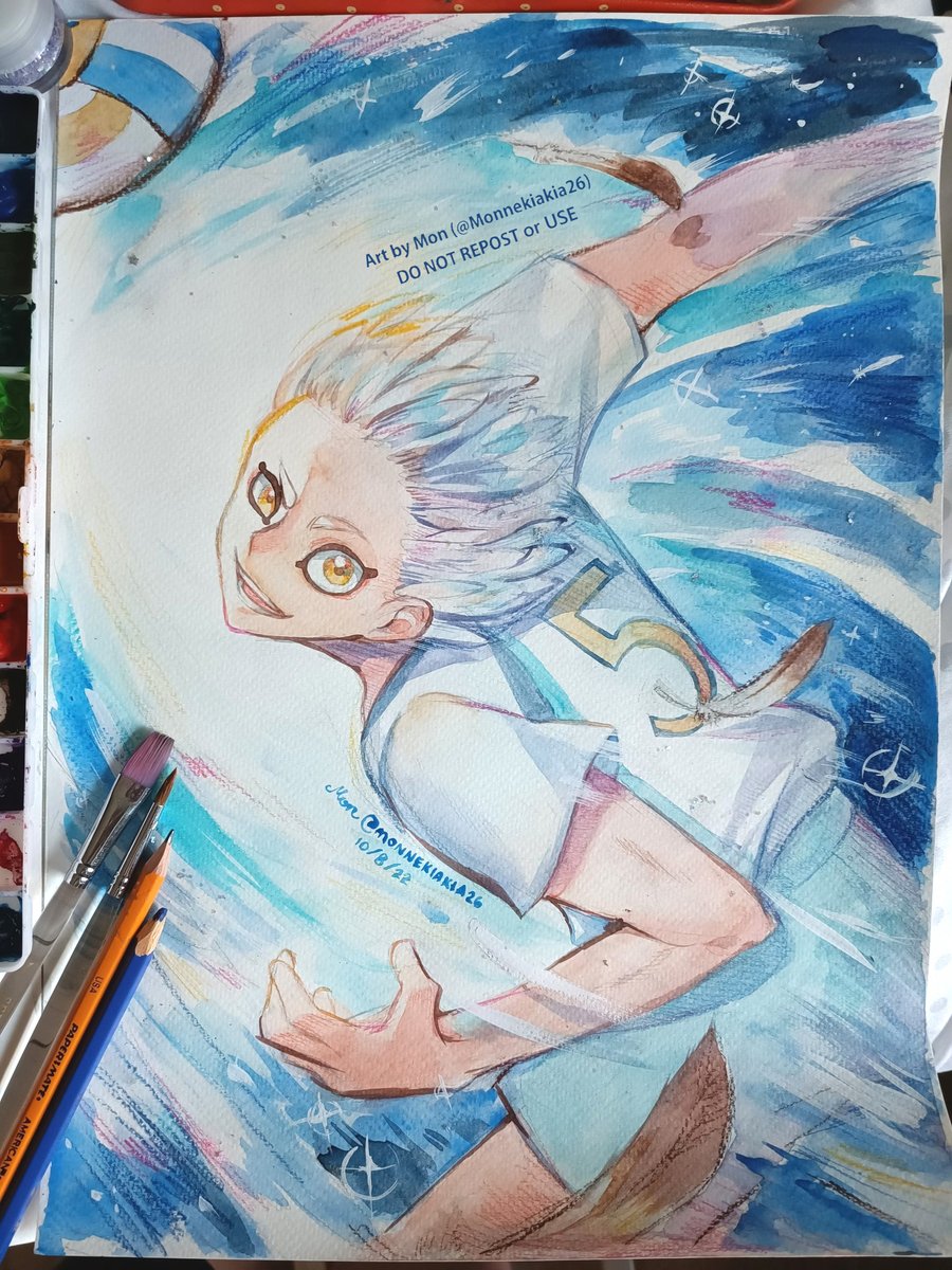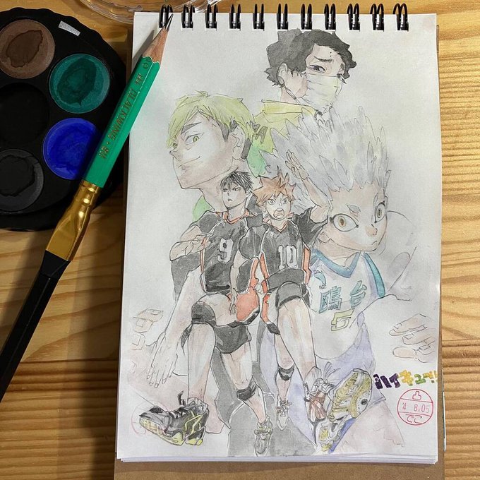 #ハイキュー #ハイキューイラスト #星海光来 #星海光来生誕祭2022 #星海光来誕生祭2022 光来くんおめでとう㊗️ 光来くんのお母さん好っき...← いや、光来くんも好きよ🤣 跳ぶ瞬間のドンのフォントの使い方がいつも好きで感動する! #凸がき #スケッチブック #模写修行 #水彩画イラスト