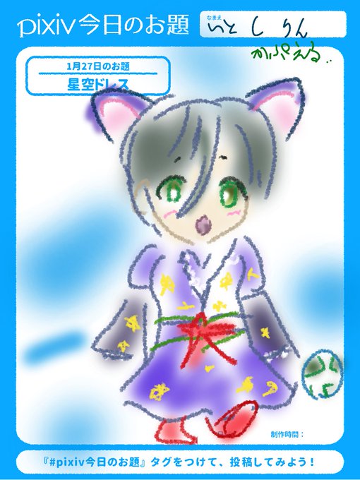 #pixiv今日のお題だった #星空ドレス #KAITO亜種 うちのKAITO亜種 SEITO 男だけど着せた。満足( ¯﹀¯ ) sketch.pixiv.net/items/61194695…