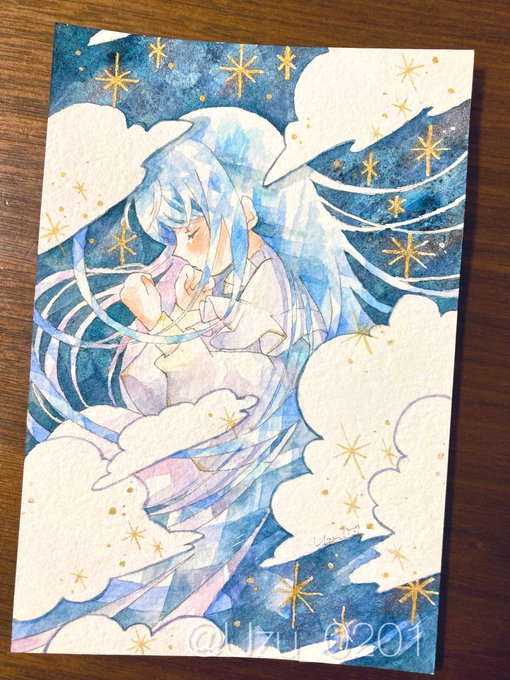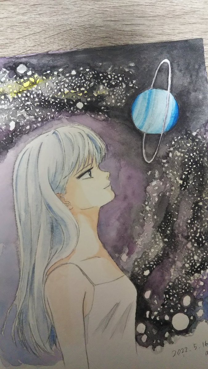 #星綴る君の物語り 5/17 綴る …貴方への想い 故郷の幼なじみの少女から…なイメージ 2021/1月作品 A4 はじめはこちらを 手紙にしようと思ってました。 淡くグレイトーンで塗ろうしていつも通り 塗りすぎて真っ青に(^o^;) #透明水彩 #創作イラスト #illustrations #オリジナルイラスト
