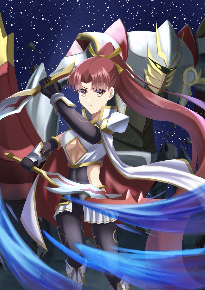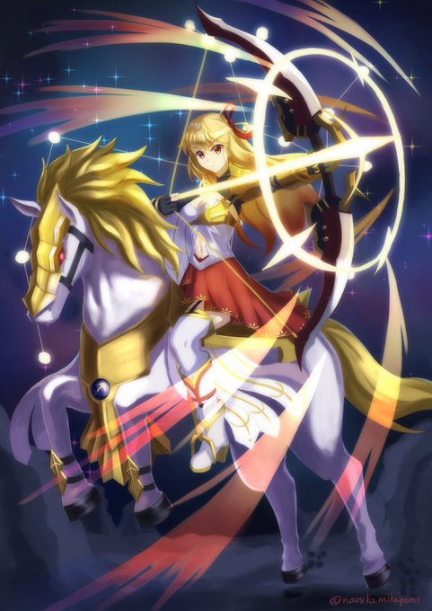 #星詠の戦乙女 No.8星詠の射手 サジタリウス 射手座を司る乙女。星馬グラニと共に駆け敵を射抜く狙撃手。 弓は二刀の剣となり近接も得意 #絵柄が好みって人にフォローされたい #創作 #オリジナル #illustration