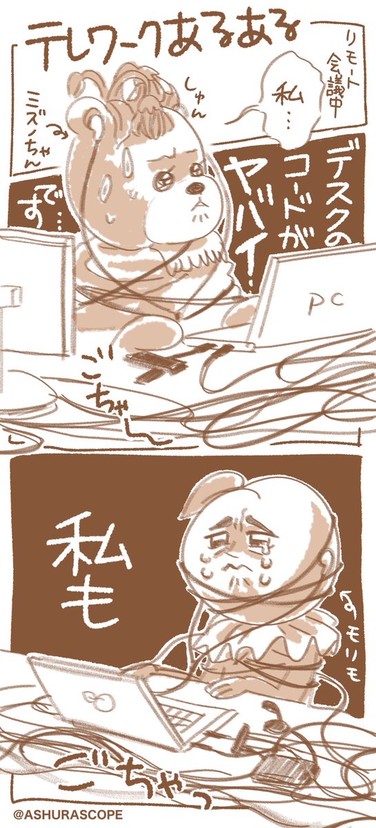 🌷漫画のネタ🌷 いつも漫画のネタは社内で募っていたりします😊でもたまに表現力を試されるネタが混ざっている様な…😂 #モモマガ #テレワークあるある #漫画 #漫画が読めるハッシュタグ #絵描きさんと繋がりたい #映像制作 #アシュラスコープ