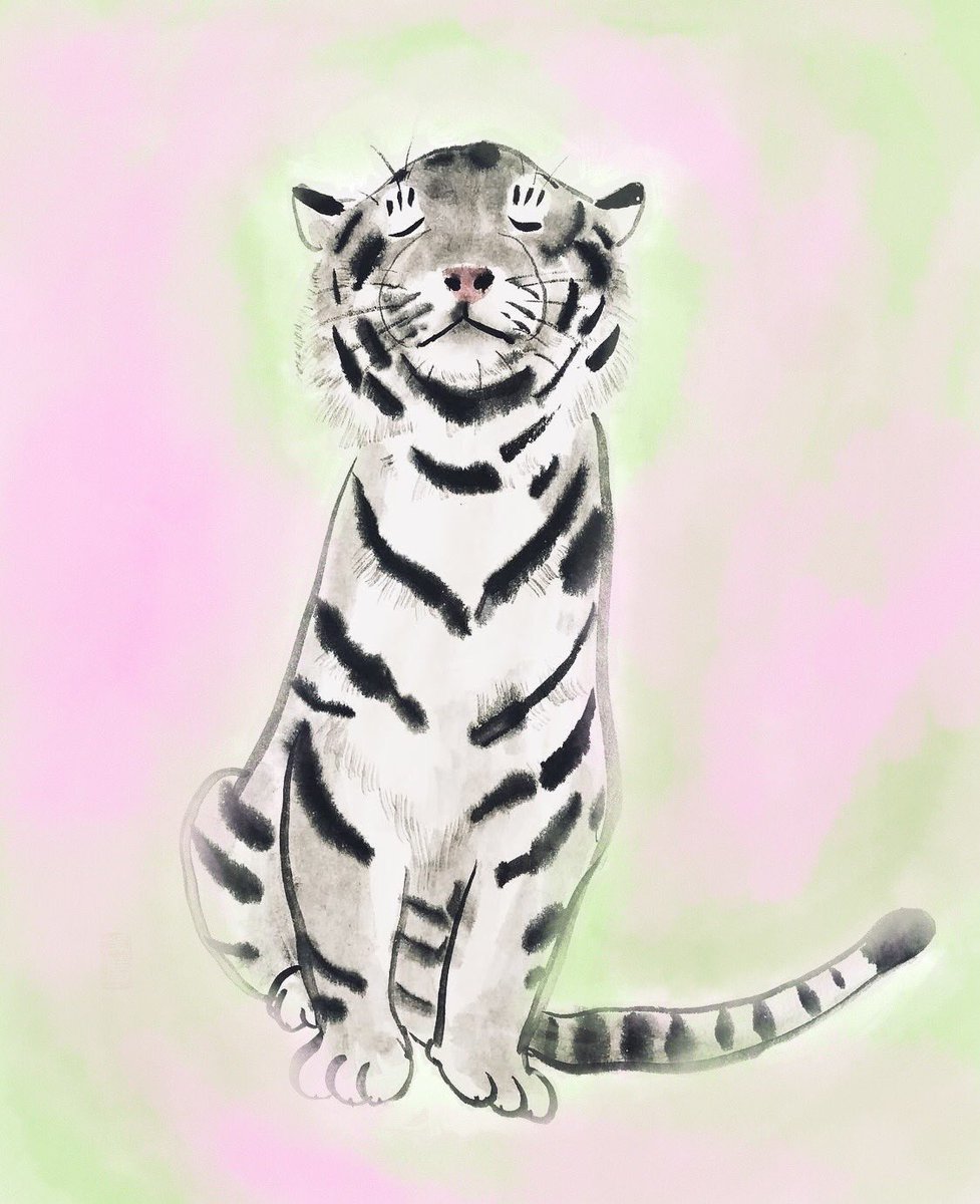 春色の空気を感じてる、墨色の虎。 Sumie Tiger feeling Spring breeze #sumie #墨絵 #デジタルイラスト #digitalpainting #ApplePencil #nftart #春が来た