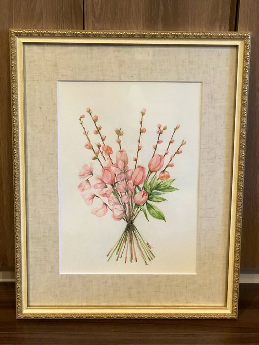 先週お友達が水彩画を購入してくれて、お店に飾らせてもらってます🥰💕 ひな祭りを華やかに飾るお花を描きました🌸 今日も寒かったですね🤧早く春になってほしい✨✨ #水彩画 #春のお花 #イラスト好きさんと繋がりたい