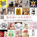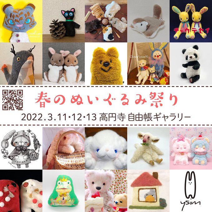 【イベントのお知らせ】 チャウテセイさん主催の 「春のぬいぐるみ祭り」に参加いたします🏵️ 期間:3月11日〜13日 12時〜19時 場所:高円寺自由帳ギャラリー 詳細:chau.chu.jp/ngm.html 出品ラインナップはツリーに続きます。 #春のぬいぐるみ祭り