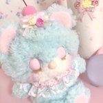 #春のぬいぐるみ祭り にはどんな子を並べるの?と、気にしてくれている方もいらっしゃると思うので、完成したブルーの子だけちらっとお見せします🧸この子はラムネ味💙 今回は「レトロファンシーな喫茶店にいそうな春のクリームソーダくまちゃん」をイメージして作りました💐🎀