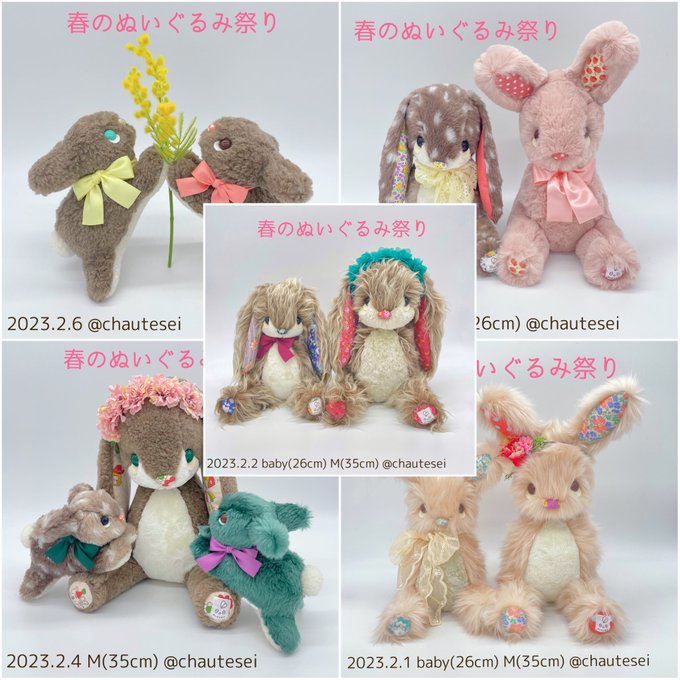 🐰出展情報🐰 🐰2023.3.24(金),25(土),26日(日) 第2回 春のぬいぐるみ祭り 主催! 高円寺 自由帳ギャラリー chau.chu.jp/fes/ngm2 🐰2023.5.20(土) デザインフェスタvol.57 ⚡️チャウテセイ史上最大の3ブース! chau.chu.jp/news.html #デザフェス57 #春のぬいぐるみ祭り #ぬいぐるみ