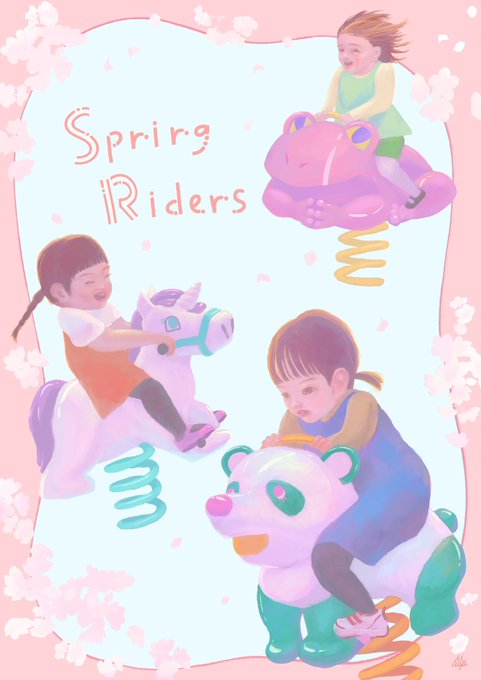 だんだんと暖かくなってきたので、春の絵を描きました🌸🌸🌸 公園のバネの遊具はスプリングライダーというらしい。ぴったりで嬉しい。 #創作 #イラスト #illustration #春の作品展示会 #春の創作クラスターフォロー祭り #絵描きさんと繫がりたい #絵柄が好みっていう人にフォローされたい
