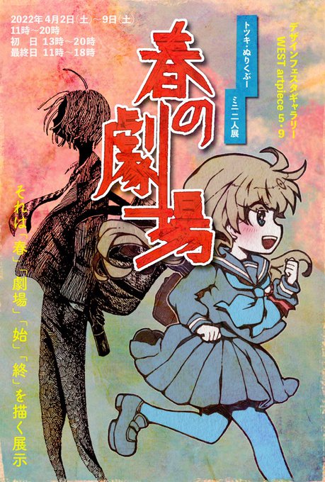 【 #春の劇場 】 開幕しました。 日時:2022/4/2(土)~4/9(土) 4/2(初日)▶︎13:00~20:00 4/3~8▶︎11:00~20:00 4/9(最終日)▶︎11:00~18:00 場所:デザインフェスタギャラリー様 Gallery WEST artpiece 5,9 #イラスト #DFGHarajuku #展示 #みんなで楽しむTwitter展覧会