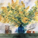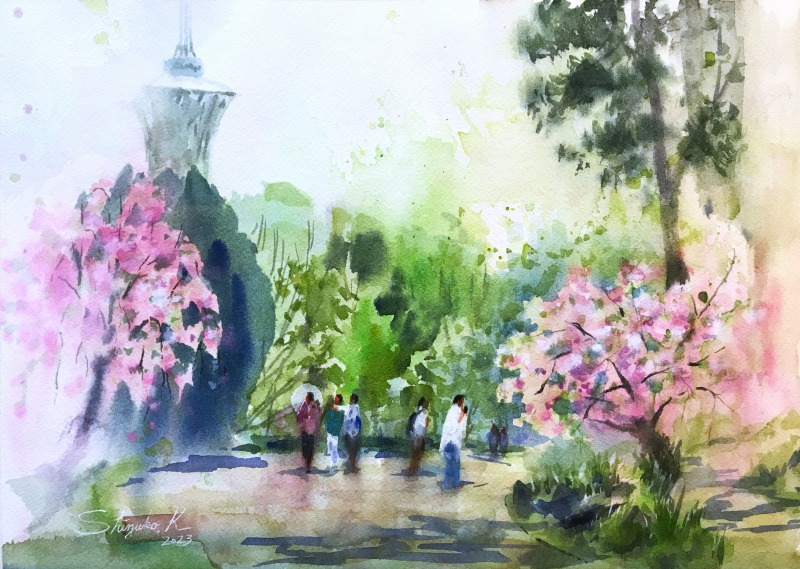 ちょびちょび進んでおります #途中経過 #花の絵 #春の絵 #水彩 #板 #workinprogress #watercolor #springart #flowerart #japaneseartist