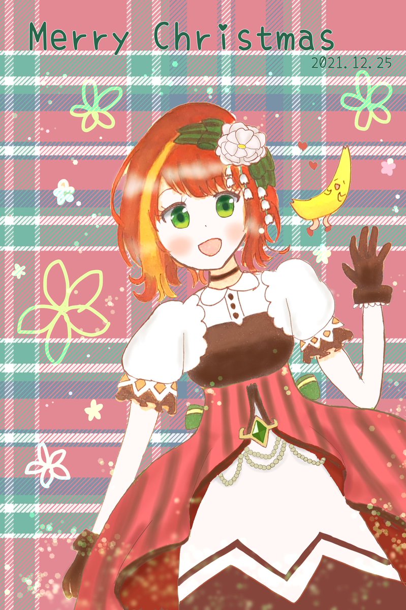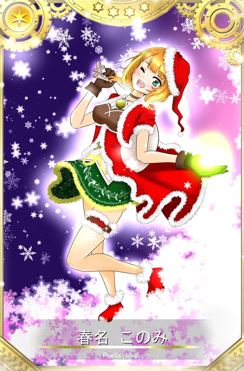 #聖夜の好ましきWeb合同 #春名このみ #MerryChristmas ムタさん、素敵な企画をありがとうございます!間に合った!() このみちゃんの魔法少女衣装をクリスマス仕様にアレンジ🎄🍌 このげくんも描きました! ※背景は素材お借りしました🙇♀️
