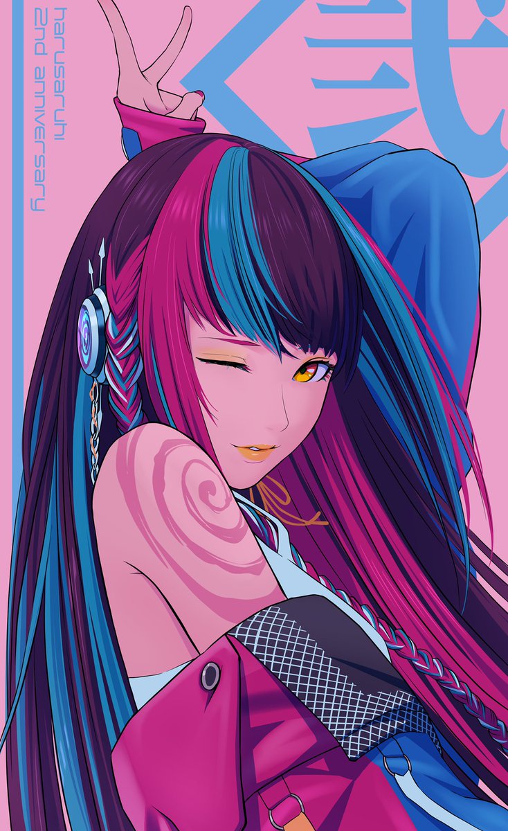 #春猿火弐周年美術部 #イラスト 二周年おめでとうございます。これからも私たちに春姉様という台風で感動を届けてくれるのでしょう。きっと。 それはそうと、描くのが難しいお洋服していらっしゃいますね。半発狂でした。対あり