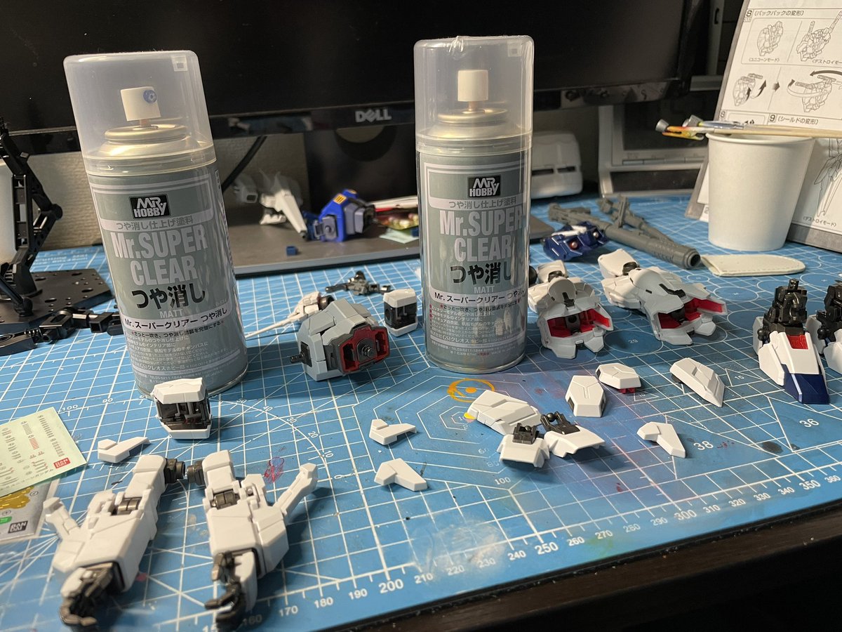 ウェザリングのためのトップコートを吹く! デカール貼っときゃ良かったと思ったけど… まぁそーゆう時もあるよね〜笑 とりあえず、猪突猛進🐗 #昨日の成果報告 #ガンプラ #ガンプラ好きな人と繋がりたい #ガンプラの画像貼るとRTされると聞いて