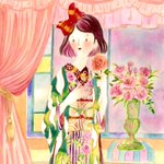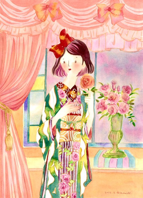 【新作】 「ときめき」 2022年.F4号.ホワイトアイビス紙.透明水彩.マスキングインク. #大正ロマン #イラスト #着物 #昭和モダン #芸術の輪 #創作の狼煙 #アトリエの系譜 #Twitterで楽しむ展覧会 #watercolour #透明水彩 #art #レトロ #illustration #アート好きな人と繋がりたい #乙女画