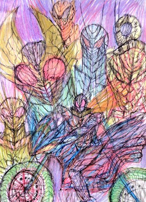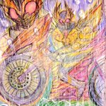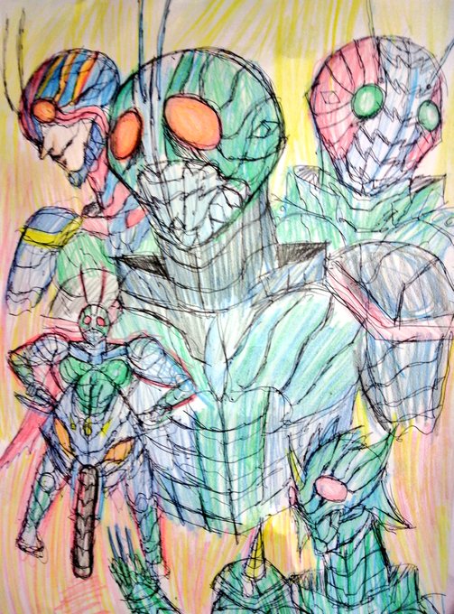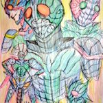 新宿駅の地下通路、上野の高架下、誰もいないトンネル、朝焼けの御徒町、あなたが空想すればそれは実在するし、みんなの心の中にいます。 今のどこかで戦っています #仮面ライダー #平成ライダー #昭和ライダー #漫画家志望さんと繋がりたい #仮面ライダー好きと繋がりたい #アナログ絵