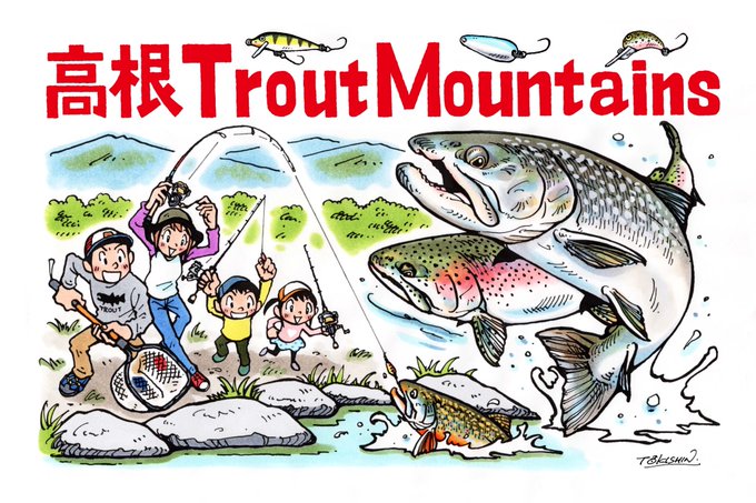 新潟県は村上市に新しい管理釣り場が誕生。 看板の絵を描かせていただきました。 現在プレオープン中。 自然に包まれたのどかな釣り場。 家族と、釣り仲間と、ぜひ遊びに行かれて下さいね😊 #管理釣り場 #トキシン #時川真一 #釣りイラスト #fishingart #トラウト #高根トラウトマウンテンズ