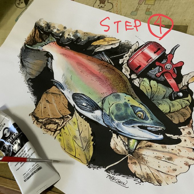 楽しいカレンダーが出来上がりました😊 詳しくは下記をご覧下さい。 tokishin66ah.thebase.in/blog/2022/12/0… #トラウト #釣りカレンダー #釣りイラスト #fishingart #トキシン #時川真一 #コピック