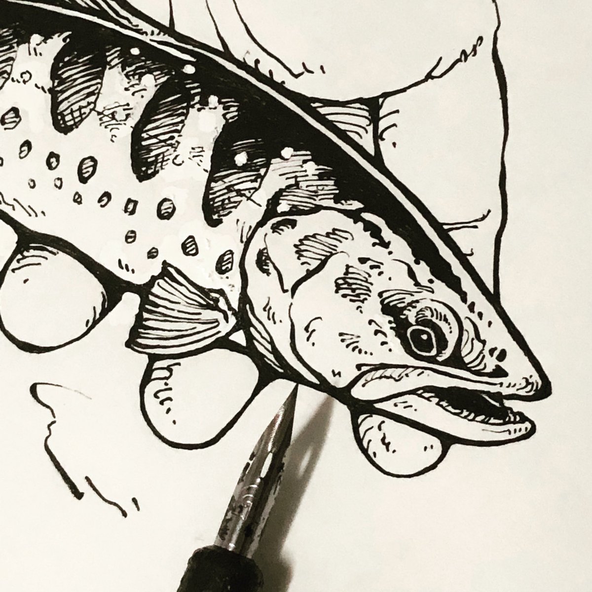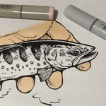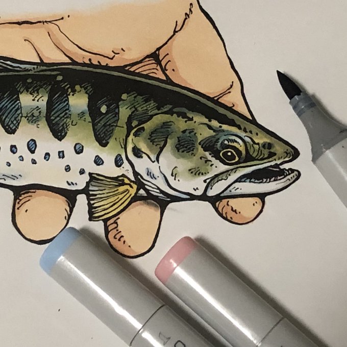 Trout illustration for Calendar 2023. 仕事の合間にちょこまかと来年用カレンダー作り。 #トラウト #trout #トキシン #時川真一 #釣りイラスト #コピック #fishingart #ルアーフィッシング #フライフィッシング