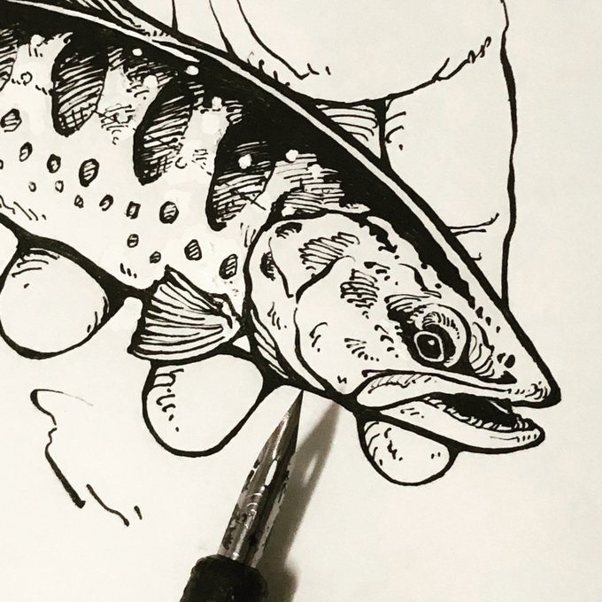 十勝のフィッシングガイドREDBAND ARTWORKSさんからのご依頼で描かせていただいたニジマスと十勝の川、美味しかったラーメン 企画詳細:rainbow-hunting.com/tp_detail.php?… #redbandartworks #北海道 #十勝 #フライフィッシング #トラウト #ニジマス #トキシン #時川真一 #釣りイラスト #fishingart
