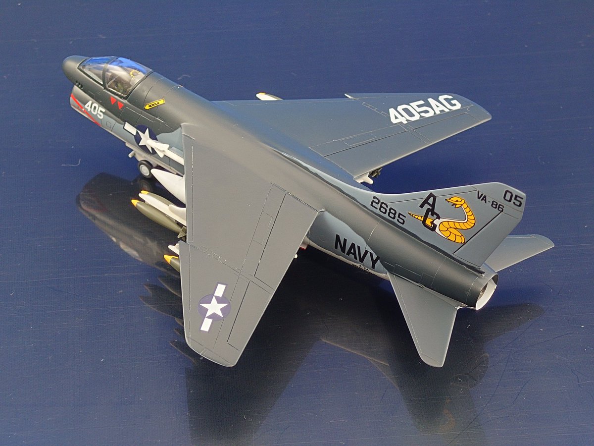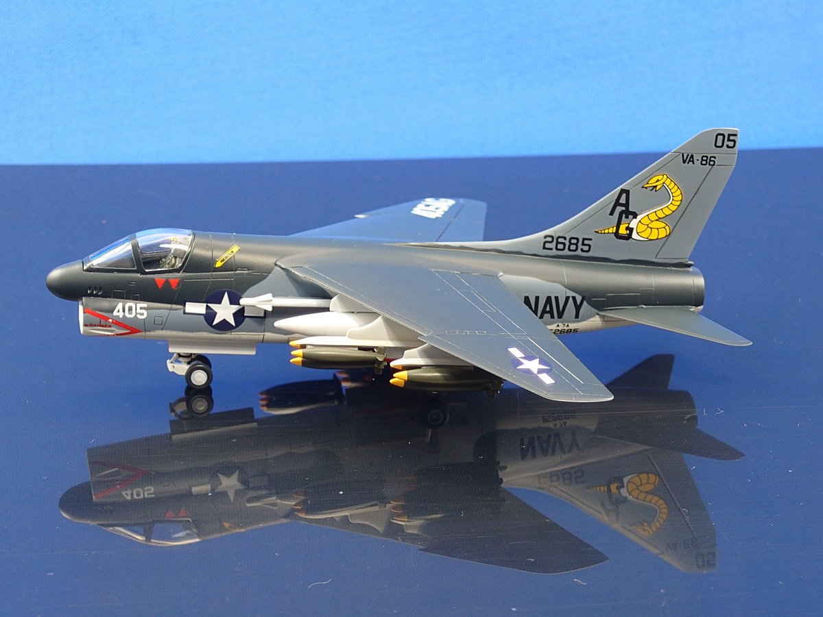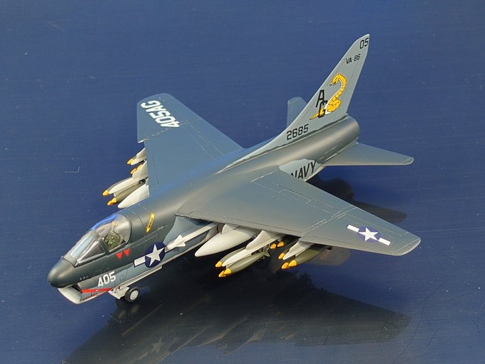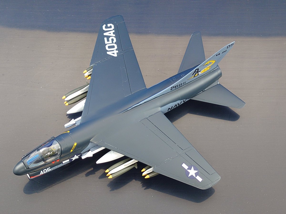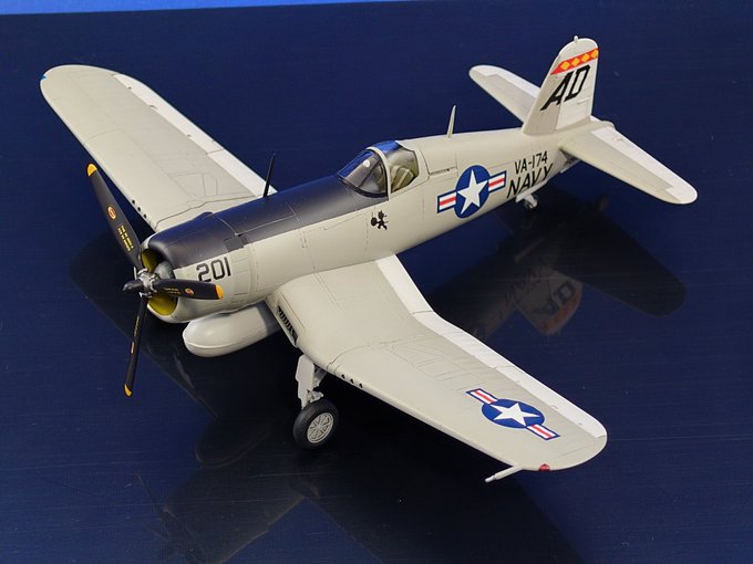 コルセア、ロールアウトしました! \( 'ω')/ヘーイ エンジン換装した戦後型で、主翼配置は低翼から高翼に変更。それに伴う主脚位置変更により特徴的であった逆ガル翼は廃止されました。動力はレシプロからジェットへ…待つのだ落ち着くのだ。人は分かり合えるのだー! #晩秋のコルセア祭り完成
