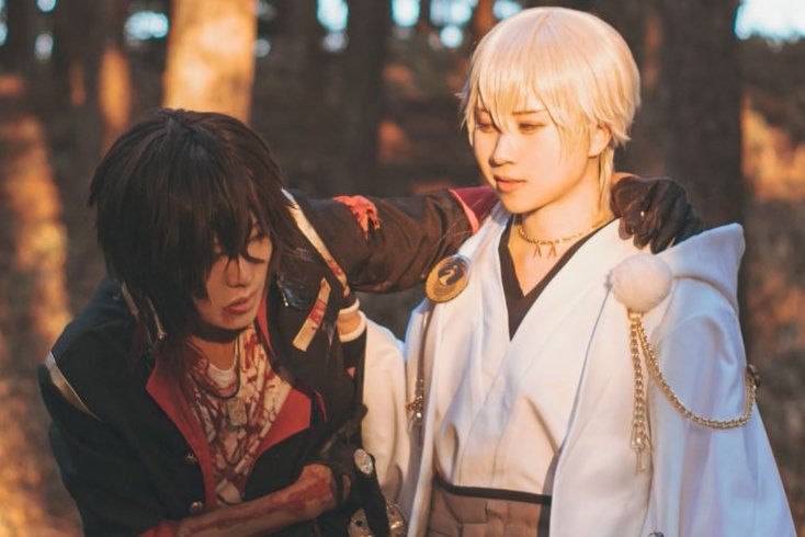 ⚠️cos/.5/刀剣/血糊/伊達組/so-ki🌸 . . 少しはいい面構えになったな。 . . 📸@cam_ameno #晴天伊達組 鶴丸@natsu0124mero 伽羅@gacha69017 #白いの黒いのそれとも赤か の続き