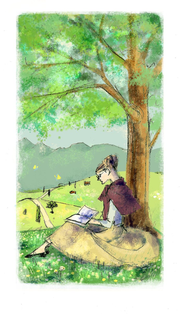 読みたい本がある。 【作品整理】2011年春 保険会社会報誌 エッセイの挿絵イラスト。鉛筆画に着彩。 #イラスト #イラストレーター #イラスト好きな人と繋がりたい #illust #読書 #晴耕雨読 #風景画 #illustration #イラストレーション