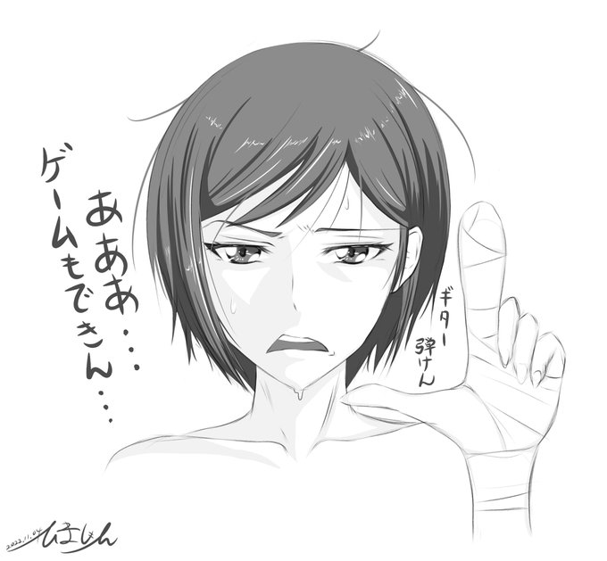 #オリジナルイラスト #オリジナルキャラ #イラスト好きと繋がりたい #イラスト #お絵描き #OCイラ #イラスト王国 ようやく包帯を外すことができたが、長時間巻きすぎて指が上手く曲がらないようです 初めての経験に何かテンションがアレな #暇子 さん (´Д`)リハビリガンガレ~