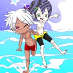 猛暑ですね😅 暑中見舞の過去絵をどうぞ! ウチのゲームに登場する魔王様(メテオラちゃん)と オリジナルキャラ、コペルニクス君とハッブルじゅぴ太くんです。 #暑中見舞いイラスト #オリジナルキャラクター