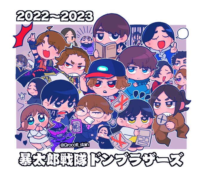 完結イラストのキャラクター答え合わせです!デフォルメ故に分かりにくいキャラも居たと思うので是非答え合わせをして二度楽しんでいただけると嬉しいです💪✨✨ #暴太郎戦隊ドンブラザーズ #ドンブラザーズ twitter.com/Anice14sd/stat…