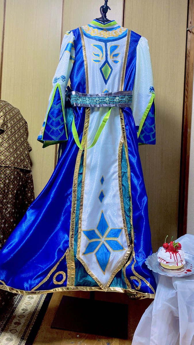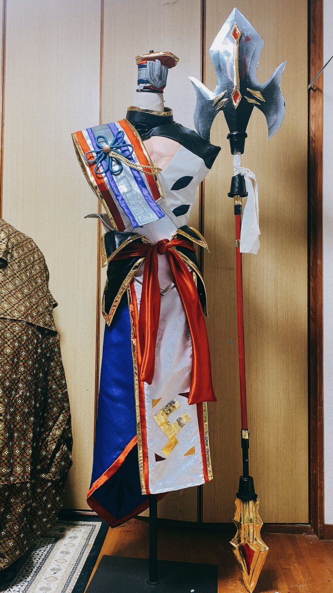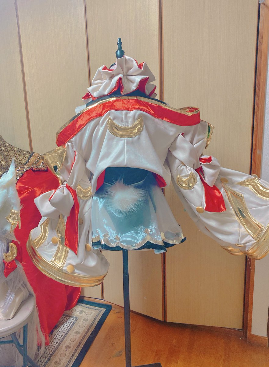 衣装できた!特仲はね2人並べて作ってあげないといけないと思ったので2人作りました!9章4節現在の資料でなのでふんわり見て欲しい…… 襟にワイヤー仕込んで立つようにしたり、肩の鎧が倒れないようにしたりなんか大変だったけど2つの衣装が並んでるのめちゃくちゃに良い #曲崎さん進捗いかがですか