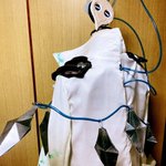 周年イラストのアンドラスの衣装ができたよ!ボタンとか金具とかあらゆるところにアンドラスのモチーフがいっぱいですごくかわいい。ヘッドギアのチューブは身体と繋がるようにしたよ ※肉塊クッションを作ってみたんだけどちょっとグロいから苦手な人は4枚目見ないでね🫀 #曲崎さん進捗いかがですか