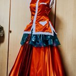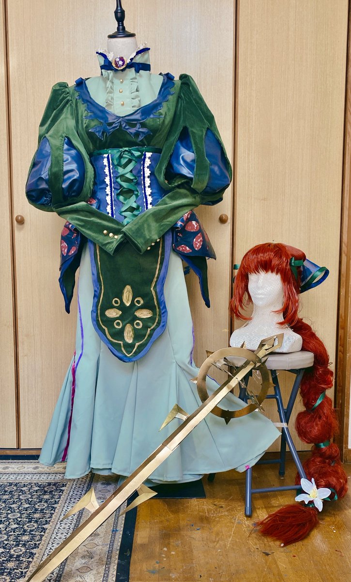 サラちゃんのリジェネレイト衣装完成した〜🥀 ベルベットであったかみのある感じにしました。袖のパフスリーブは着たら肘の高さで止まるからシルエットが変わります…二重袖になっててかわいいです。マーメイドスカートも裾ボリュームあるので歩くとかわいいです👗 #曲崎さん進捗いかがですか