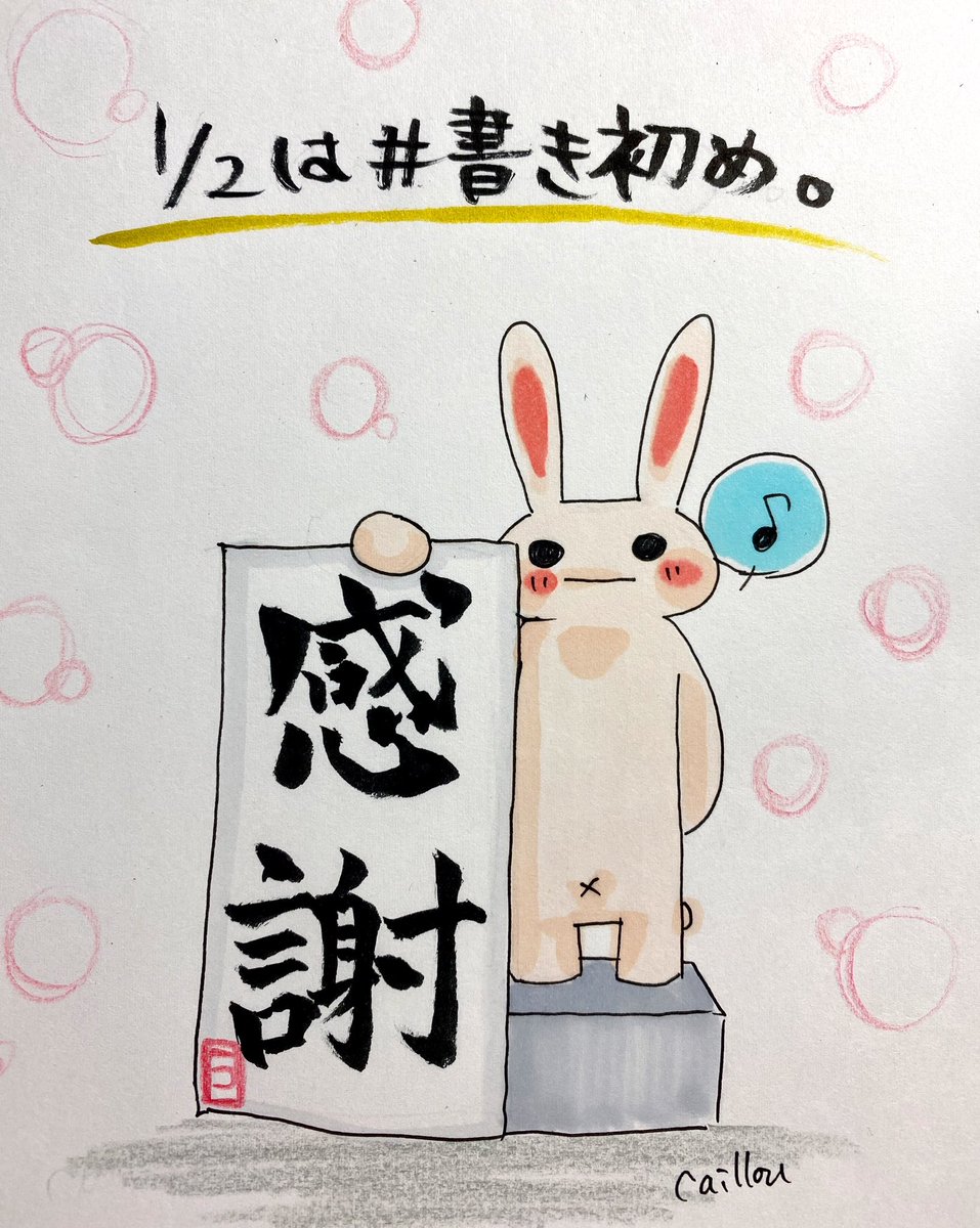 本日は「#書き初め」の日です♪ 書き初めで書いた字をどんど焼きで燃やすと、字が上手くなるんだって。上手く書けたら燃やすのもったいない! #イラスト #今日は何の日 #絵描きさんと繋がりたい #イラスト好きさんと繋がりたい #ゆるいイラスト #illustration