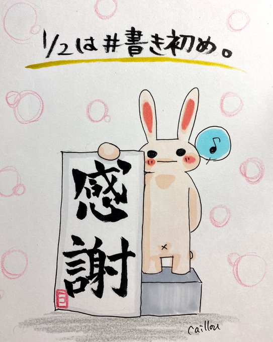お正月といえば書き初め! うさぎさんがぴよりのために書いてくれたよ🐰✨ ▼あけおめスタンプ store.line.me/stickershop/pr… #LINEスタンプ #ゆるイラスト #ひよこ #ウサギ #イラスト #卯年 #ぴよりびより #illustration #あけおめスタンプ2023 #HappyNewYear #謹賀新年 #書き初め #お正月イラスト