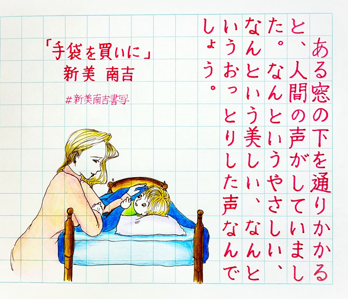 お題をありがとうございます。 #新美南吉書写 第22回 「手袋を買いに」⑧ まさかこの場面を切り取ってくるとは! 帽子屋のおじさん「・・・。」 #書写好きな人と繋がりたい #絵描きさんと繋がりたい twitter.com/aomidori02/s…