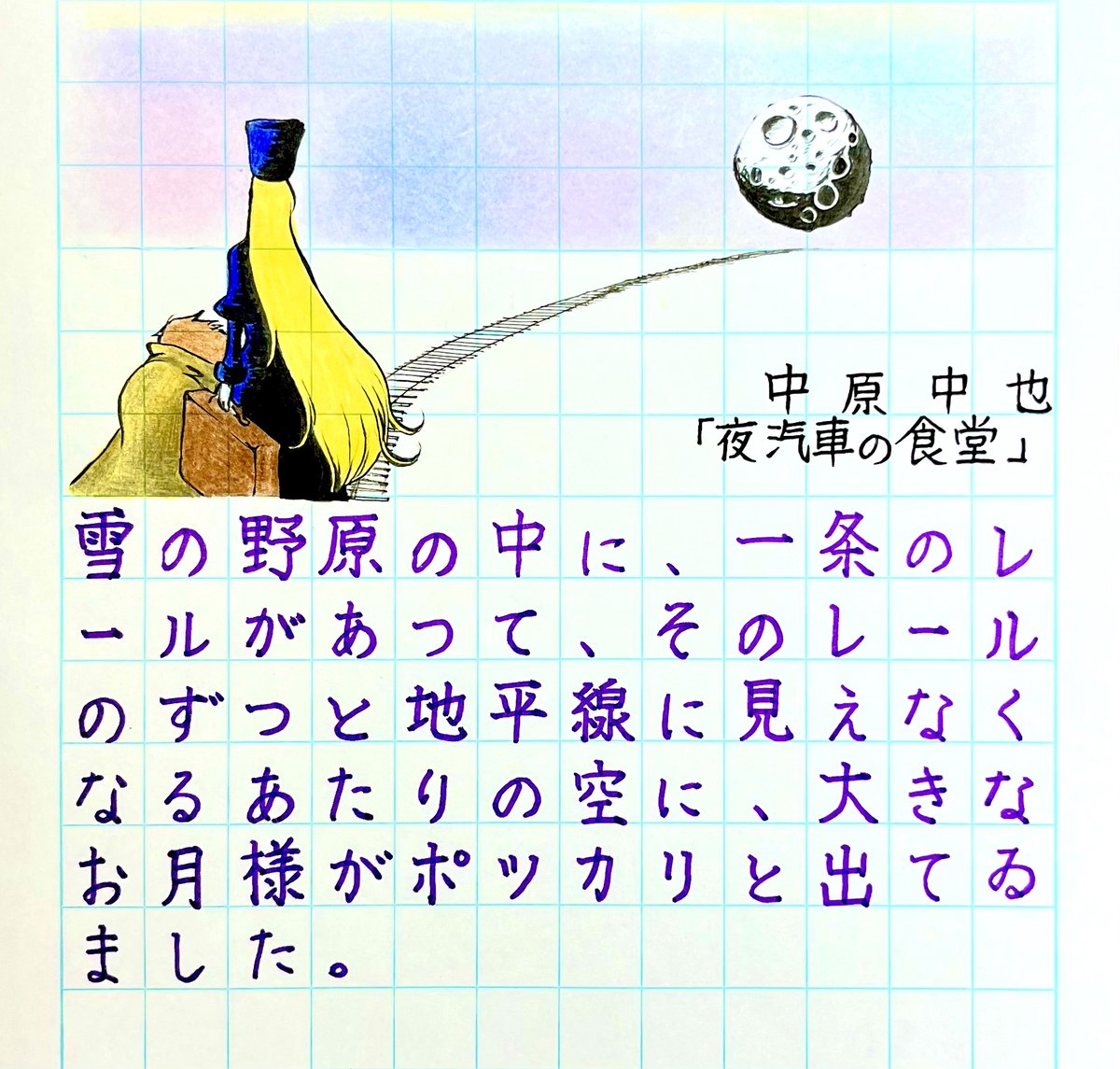 お題をありがとうございます。 #空想書写 No. 362 「夜汽車の食堂」より 銀河鉄道999をイメージして読んだら、前半部分がまんまでした! というわけで挿絵はコチラのお二人 #書写好きな人と繋がりたい #絵描きさんと繋がりたい #銀河鉄道999 リアタイ世代ではないけどDVD全話視聴済よ twitter.com/img_shosha/s…