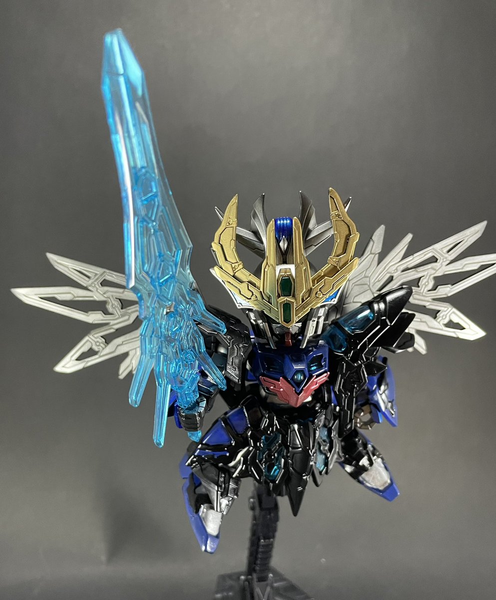 曹操ウイングガンダム完成! 今回も黒立ち上げ塗装を行いました😃 このシリーズにしては塗り分けがそんなに多くなかったので、とてもオススメのキットです😆 #曹操ウイングガンダム #三国創傑伝 #ガンプラの画像貼るとRTされると聞いて #SDガンダム #ガンプラ好きと繋がりたい