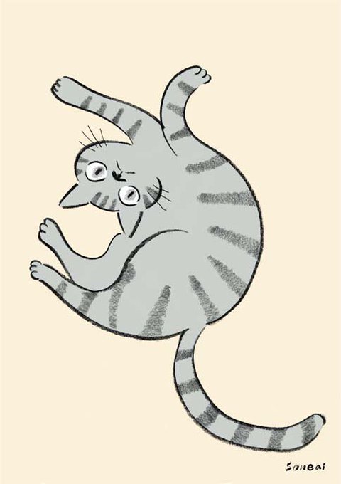 「わたしの王様(My king)」 昔、実家に猫が三匹いて、たまに帰省した際に寝てるとこを無理やりに起こしたり肉球を触ったりする私は全く猫等に好かれていなかった。やはり猫には下僕のような気持ちで接しないといけない #曽根愛 #soneai #イラストレーション #illustration #猫 #cat