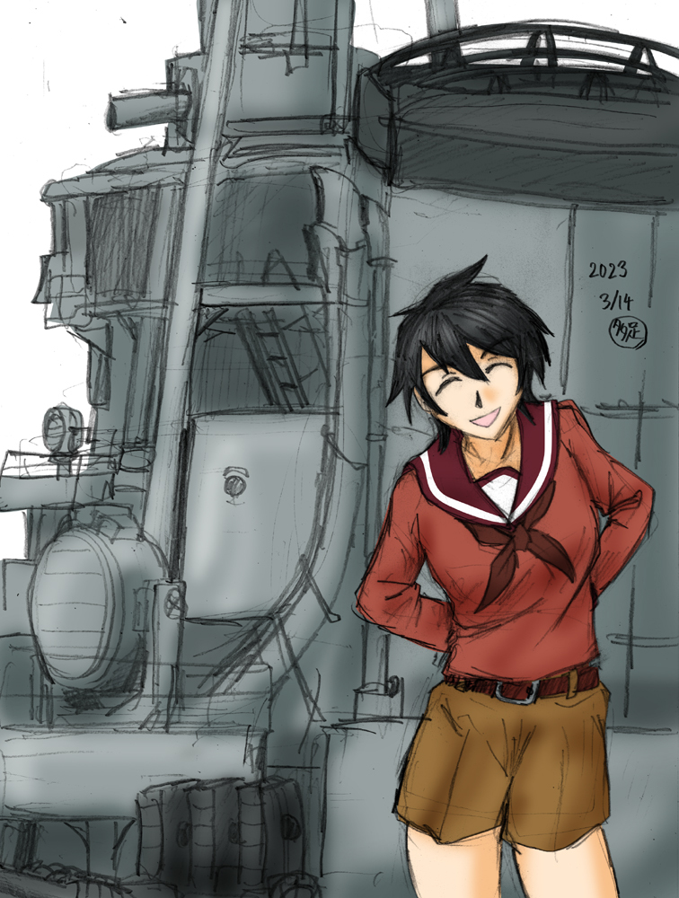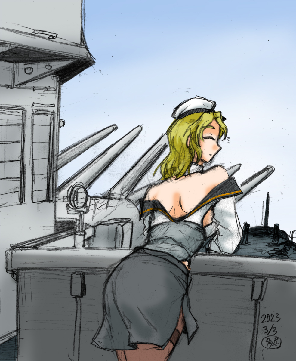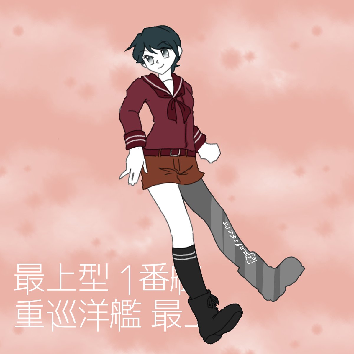 最上「重巡最上、来たよ!あ、そうだね。火力も大切だから、もっかい積んでみたよ主砲!どう?」 #艦これ版深夜の真剣お絵描き60分一本勝負 #艦これ版真剣お絵描き60分一本勝負_20230622 #最上