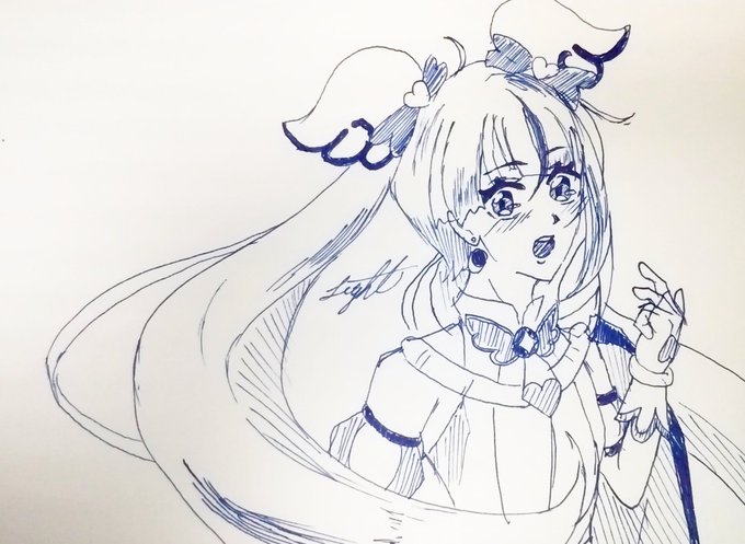 #最初にリプきたキャラを一週間描き続けて画力向上するか試す #precure #アナログイラスト 2日目 キュアスカイ☁ スパイシーが変身してからもーちょいで1年か…🥪時が経つのは本当に早い!! プリズムと2人で戦う姿も楽しみにしてます✨☁🌈