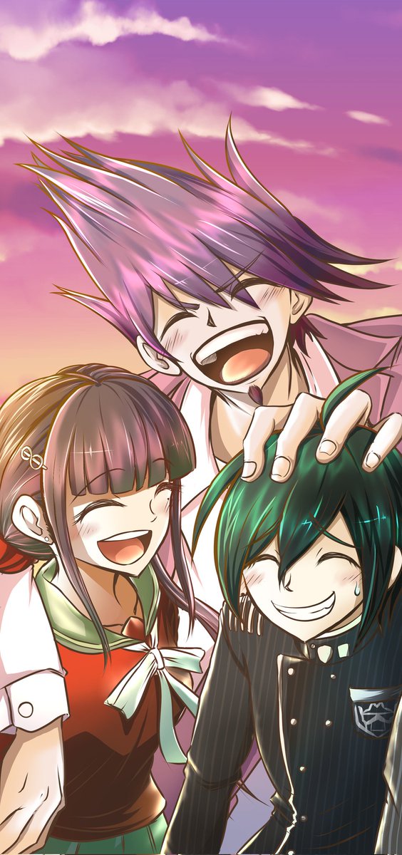 トレーニングトリオを描きました! タイトル「ともに笑顔」 #ダンガンロンパ #ダンガンロンパ好きと繋がりたい #最原終一 #春川魔姫 #百田解斗 #イラスト #イラスト好きさんと繋がりたい
