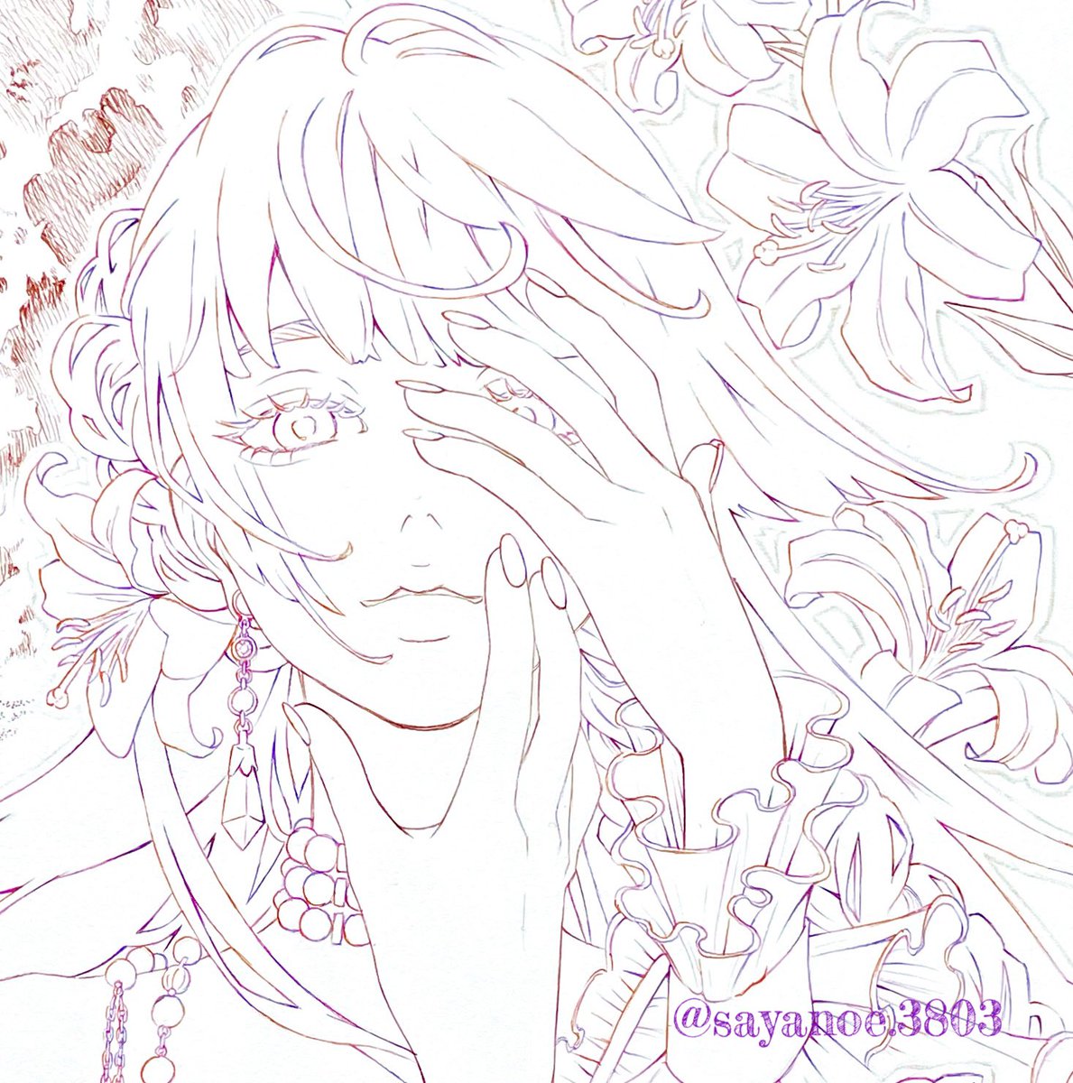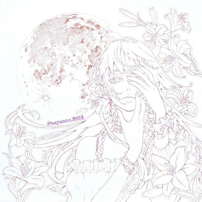 COPIC AWARD2022に向けて 作画中のイラストです🌙 #copicaward2022 #illustration #コピックアワード2022 #イラスト #線画 #月イラスト #創作女子