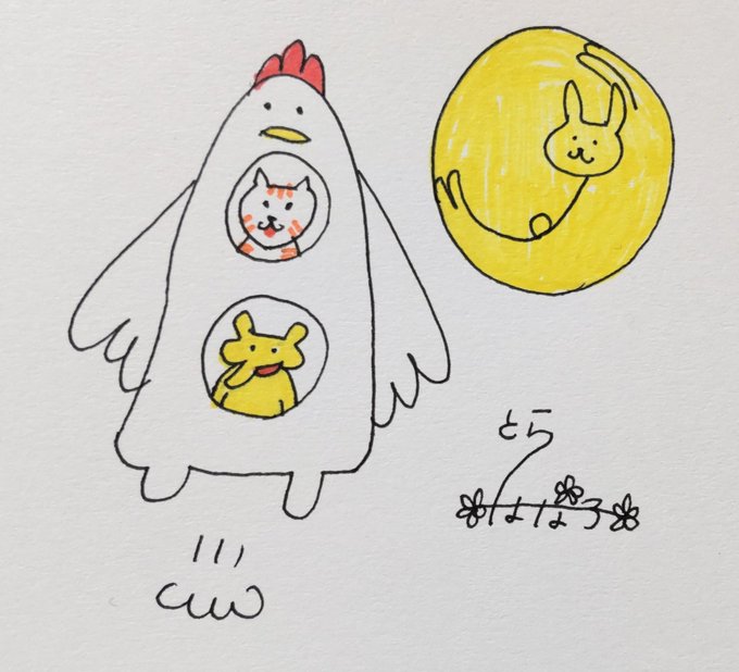 おはようございます!! #月ロケットの日 ニワロケットに乗って月へGO!! 今日も素適な月曜日を〜🤗 #絵描きさんと繫がりたい #みんなで楽しむTwitter展覧会 #イラスト #油性ペン #マッキー