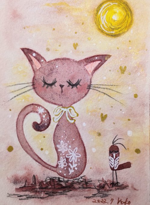 「月光」 過去作ですが、 9月といえば お月様ということで✨ #猫の絵 #猫イラスト #猫 #月 #月光 #透明水彩 #cat #Watercolor #waterdrawing #作品を載せて自分の作品を知ってもらおう