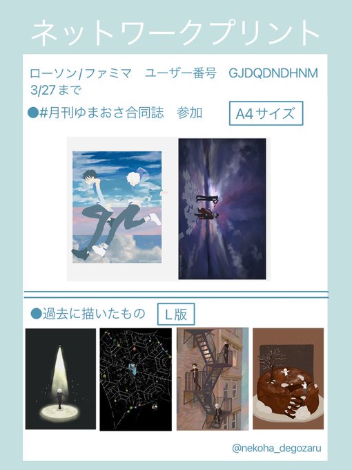 #月刊ゆまおさ合同誌 様用のネプリです 天使の日→捜し物の日 セブン‐イレブン 予約番号48709522、A4 白黒:20円、2021/10/30迄 できたら他の素敵な作品とともに挟んでやってください💖