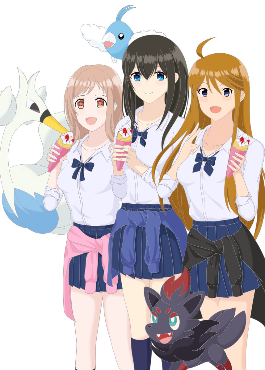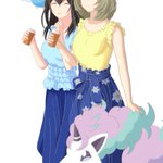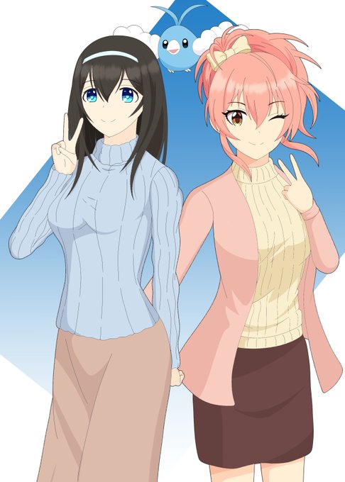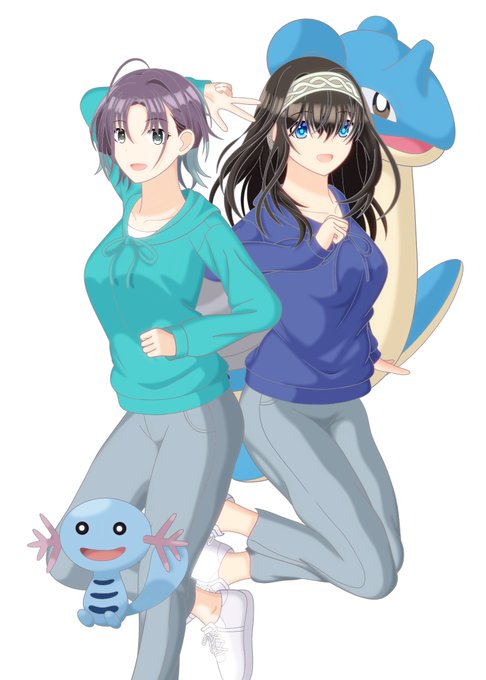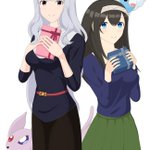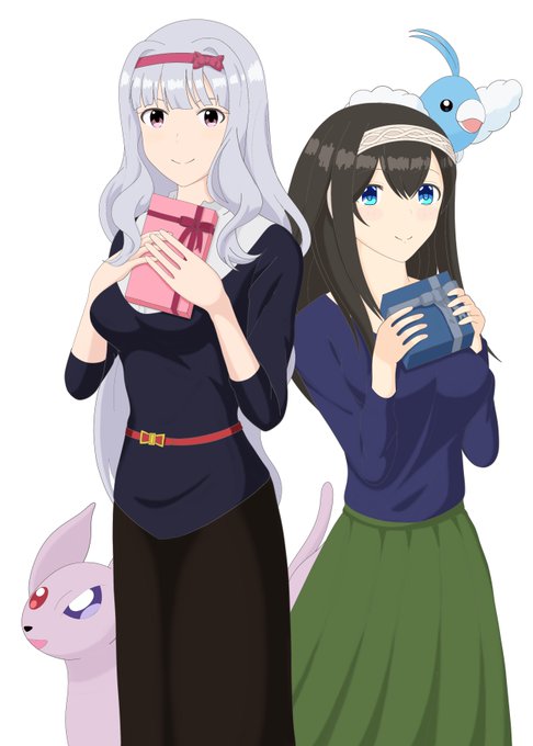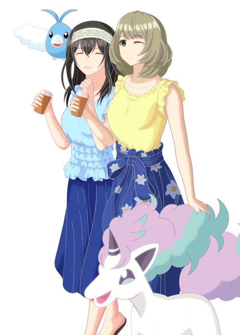真乃さん誕生日おめでとう🎉 改めて恵美さんの誕生日もお祝いします。 櫻木真乃さんとスワンナ 所恵美さんとゾロア 鷺沢文香とチルット #櫻木真乃生誕祭2022 #所恵美生誕祭2022 #月刊文香