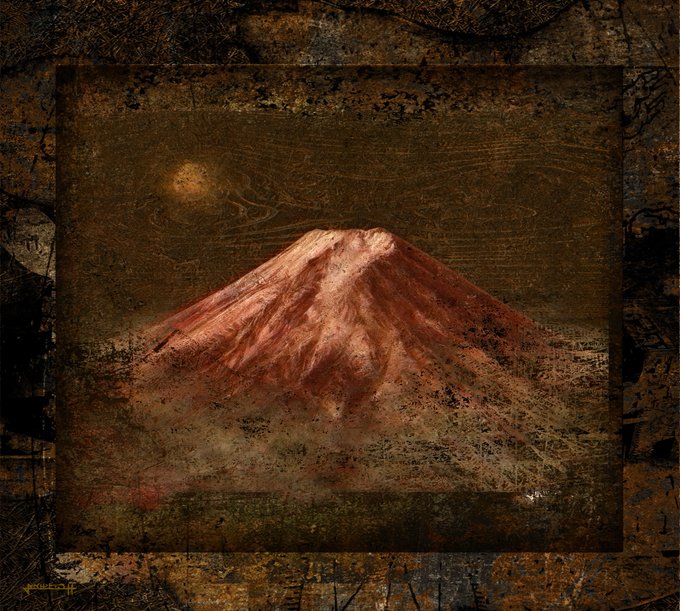 ミず鬼ずム百景68 ほだか 赤富士(油絵) 明日も良い日になりますように🌈🍀 #自創作に狂っている人間と繋がりたい #絵柄が好みっていう人にフォローされたい #みんなで楽しむTwitter展覧会 #夏の創作クラスタフォロー祭り #油彩画 #月刊美術 #絵描きさんフォロバ100 #絵描きさんと繋がりたい